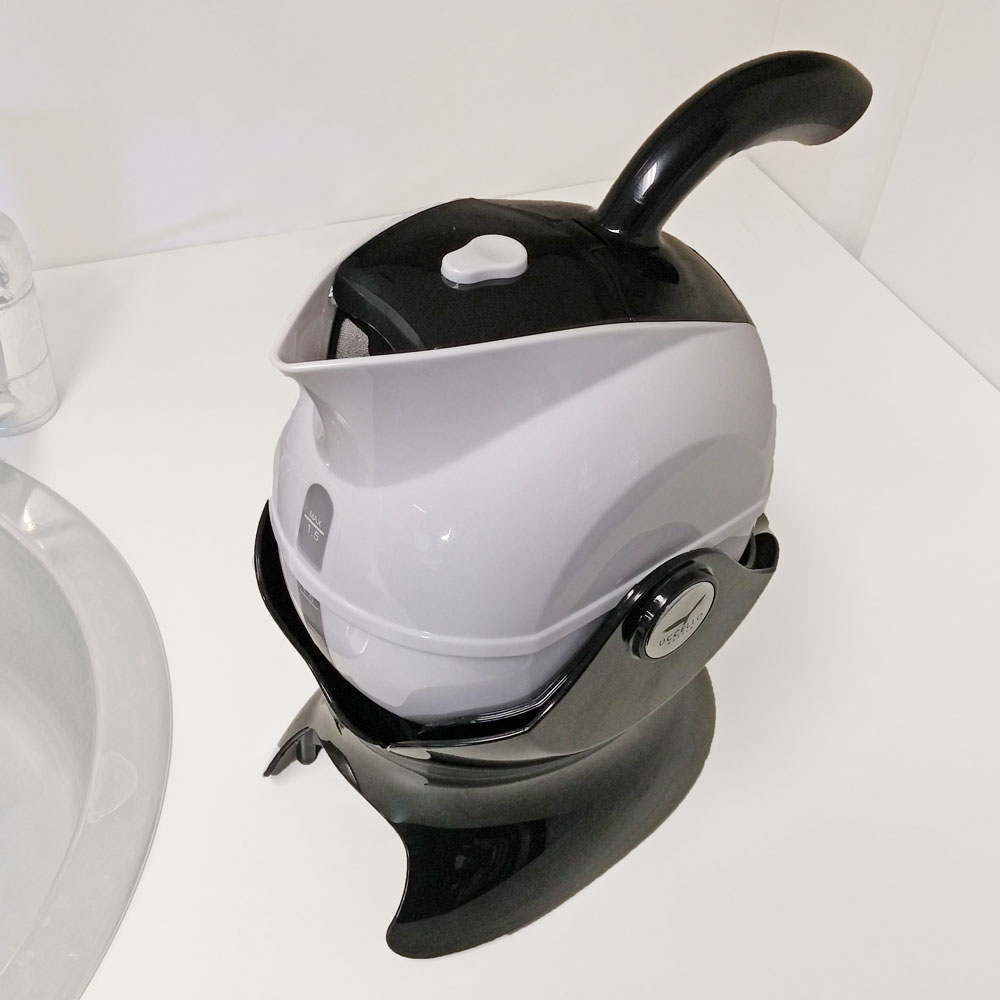 • The kettle’s non-weight-bearing ‘tilt and pour’ action from the ergonomically designed handle directs hot water to the cup without removing the Kettle from its cradle.